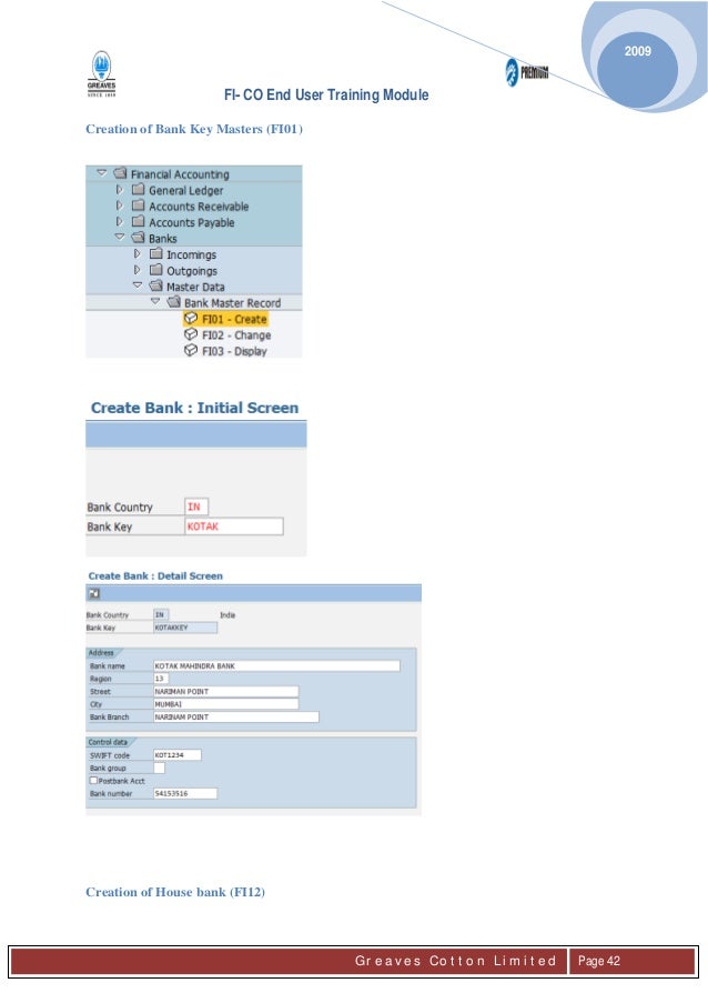 SAP FICO Enterprise Structure: Define Company Define Company Code Assign Company Code to Company Define Business Area Financial Accounting Global Settings: Maintain Fiscal Year Variant (Maintain Shortened Fiscal Year) Assign Bank Settings: House Bank Creation Check Lot Creation Creation of ... Read Document