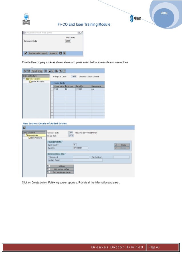 Www.sapficoconsultant.com Page 2 SAP Bank Configuration © 2016 sapficoconsultant.com. All bank needs to be defined as a House Bank in the SAP system. Thus you will only needto create a house bank for a bank account if you want to use the aforesaid functionality. ... Retrieve Full Source