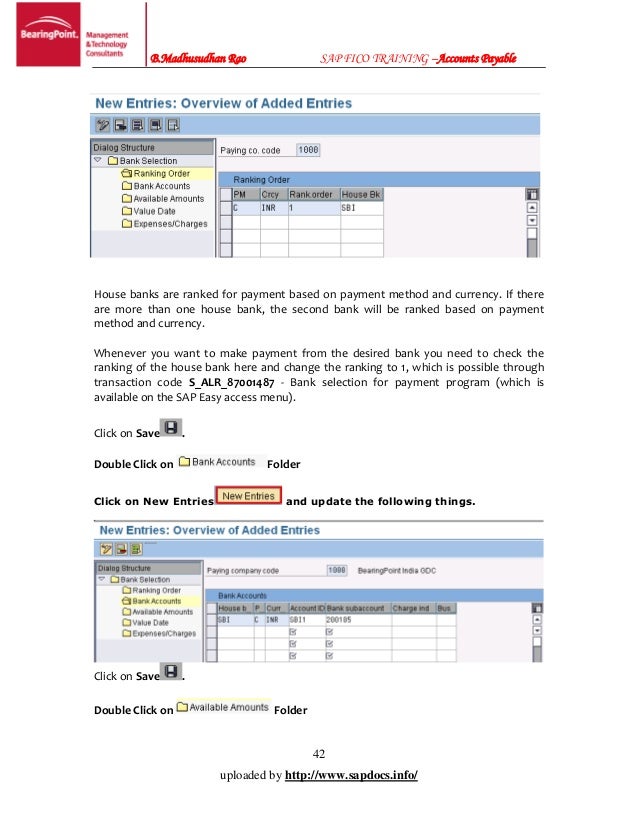Sap bank accounting pdf Accounts Receivable and Accounts Payable. 2 House Banks and House Bank Accounts.Overview of SAP Bank Communication Management. 2 International Accounting Standards IAS. bank accounting configuration in sap pdf PDF: SAP Integration Model: ... View Document