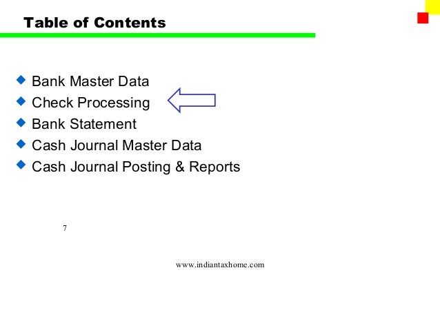 Table of Contents Introduction House Bank Accounts GL Account Determinations – US Localization @ @ @ @ ... Return Doc