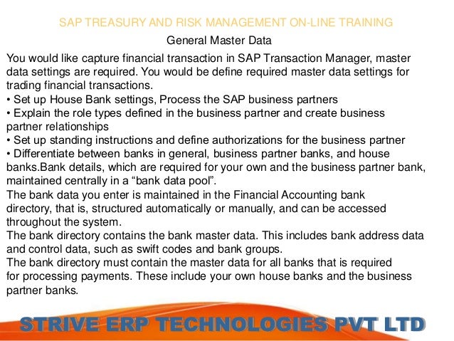 When you first install and customize an SAP system, you have to set up your organizational units. You can speed up this process by using the country template, House bank transfers the payment to payee’s bank, and then sends the actual ... Retrieve Full Source